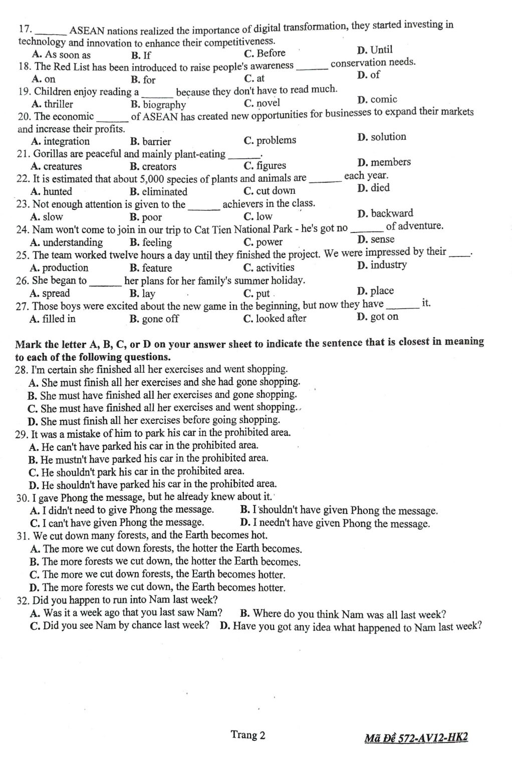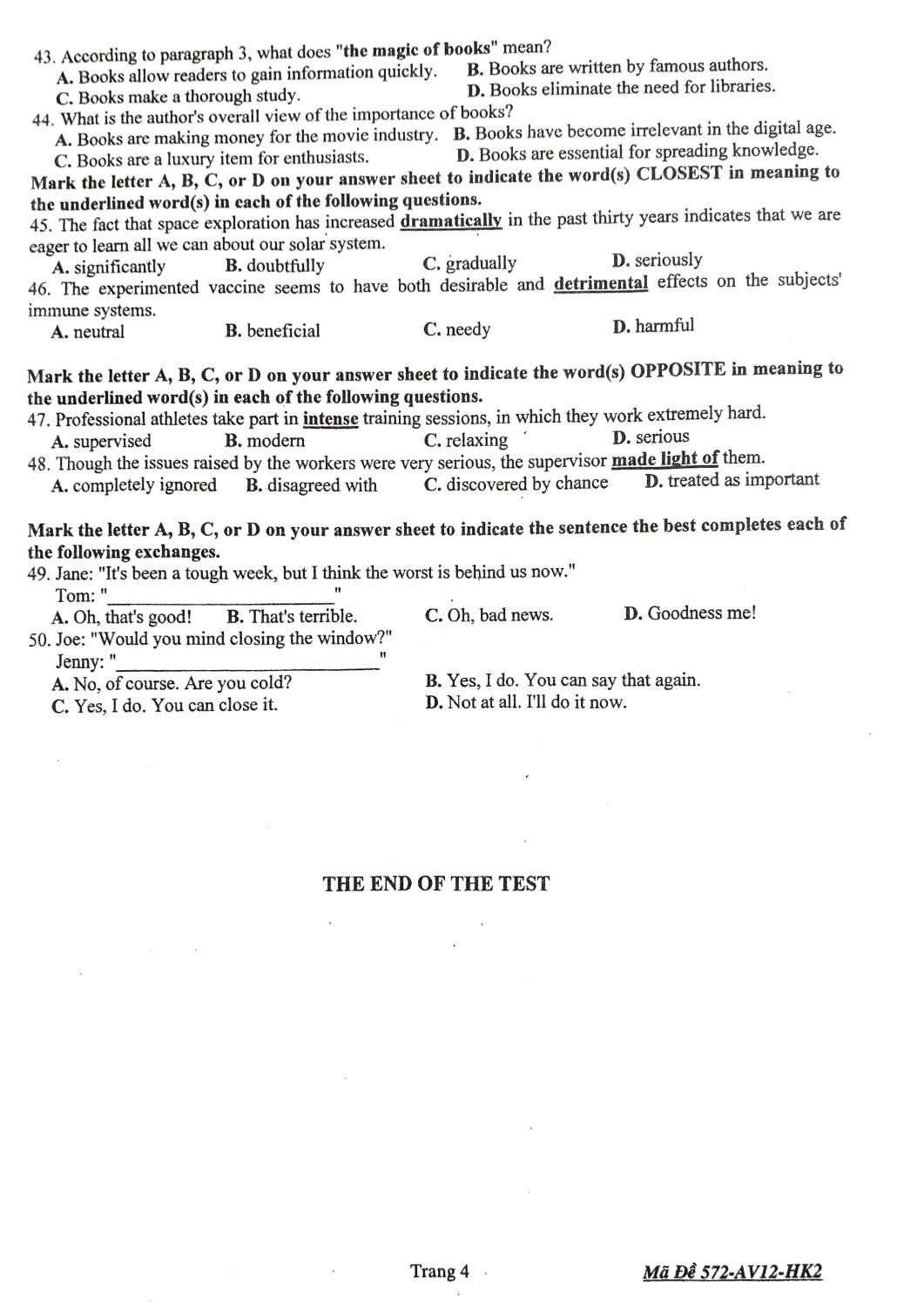 Đề thi môn Tiếng Anh học kỳ 2 của học sinh lớp 12 Trường THPT Nguyễn Thượng Hiền (TP.HCM) được VietNamNet tổng hợp và chia sẻ.